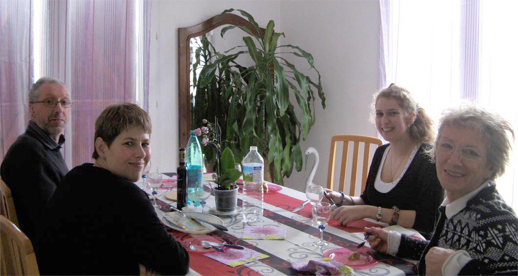 Sunday 17. 01. 10 Today I went with Claire to lunch with Clemence’s family. Clemence is Daisy’s French pen friend who lives in Baillargues which is just on the edge of Montpellier. We had a very relaxed and tasty meal starting with Gamba shrimps, followed by