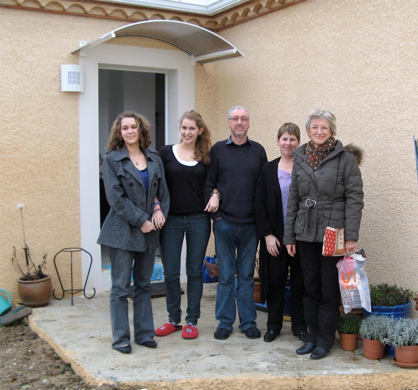 pasta with mushrooms and then cake for dessert. I had brought some Canadian ice wine so we had this after the meal. They moved into their new house in September and are still settling in and finishing various projects. It is a great house and Jean-Luc and Isabelle have their bedroom on the ground floor and the girls have the second floor. The grey rabbit lives in the living room.